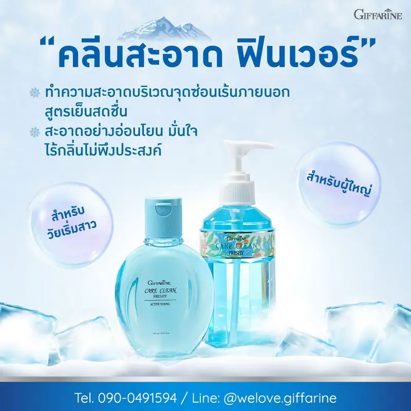 กิฟฟารีน แอคทีฟ ยัง แคร์คลีน เฟรชชี่ | น้ำยาอนามัยสูตรเย็นสำหรับวัยรุ่น สดชื่น มั่นใจ