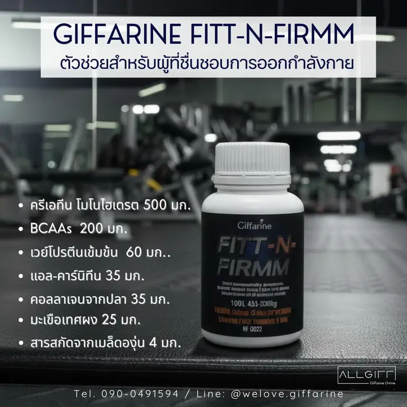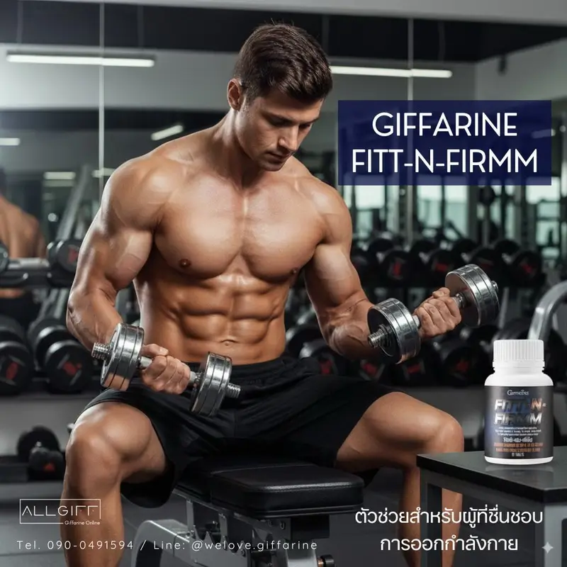 ยกระดับการออกกำลังกายของคุณไปอีกขั้นด้วย ฟิตต์ เอน เฟิร์ม กิฟฟารีน (Giffarine Fitt-N-Firmm) ผลิตภัณฑ์เสริมอาหารที่รวบรวมสุดยอดสารอาหารสำคัญมาไว้ในเม็ดเดียว ออกแบบมาโดยเฉพาะสำหรับผู้ที่ต้องการสร้างกล้ามเนื้อที่แข็งแรง เพิ่มความอึดทนทาน และมีรูปร่างที่เฟิร์มกระชับอย่างเห็นได้ชัด