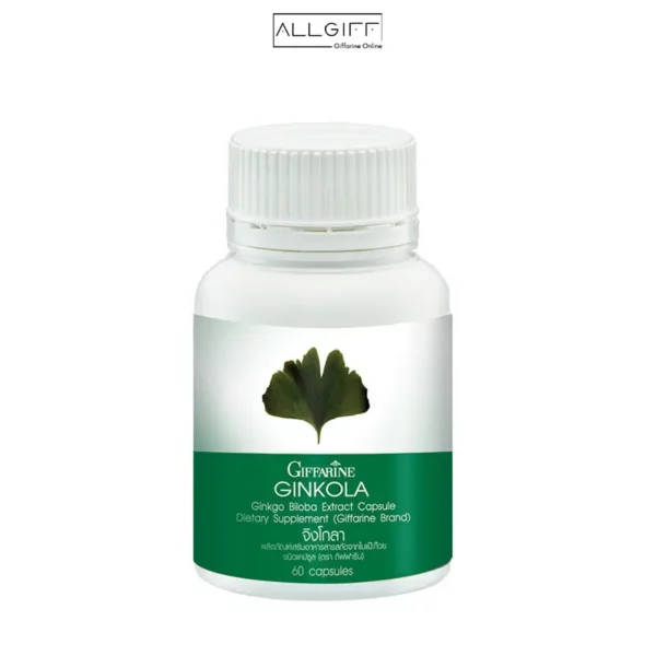 จิงโกลา กิฟฟารีน (Giffarine Ginkola) ผลิตภัณฑ์เสริมอาหารสารสกัดจากใบแปะก๊วย ชนิดแคปซูล ตัวช่วยบำรุงสมอง เพิ่มประสิทธิภาพความทรงจำและการเรียนรู้ เหมาะสำหรับผู้ที่ต้องการดูแลสมองและระบบประสาท หรือผู้สูงอายุที่มีความกังวลเรื่องความจำ