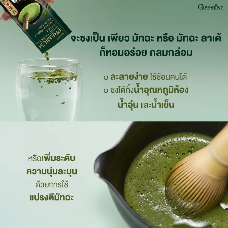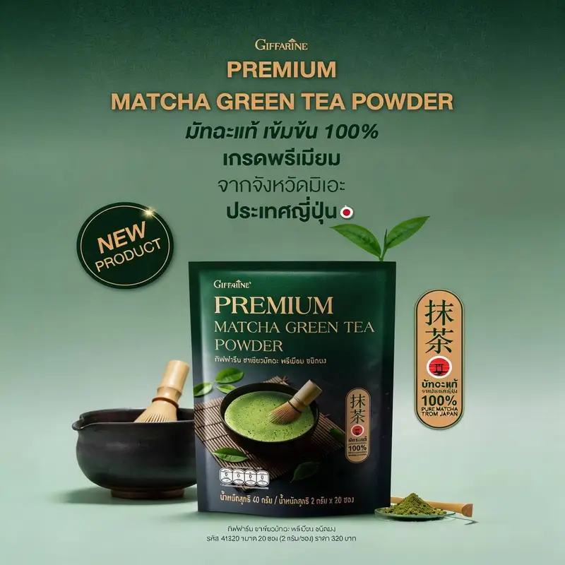 กิฟฟารีน ชาเขียวมัทฉะ พรีเมียม 100% จากญี่ปุ่น รสชาติอูมามิแท้ ส่งตรงจากจังหวัดมิเอะ
